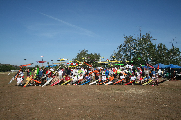 Pilots at the 2014 International Hand Launch Glider Festival at Poway California enjoying discus launch gliders, a type of contest format that has its roots with the TPG and is now an international event known as FAI F3K.
