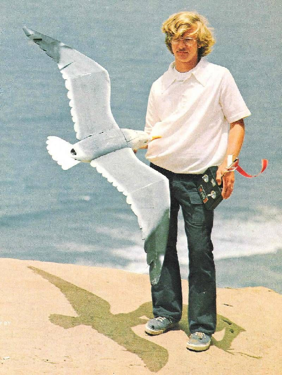 Mark Smith designed and flew the radio controlled soaring seagulls for the motion picture Jonathan Livingston Seagull. The R/C gulls were used in the filming at several locations including Torrey Pines, Carmel and Hawaii. Mark also set endurance and distance records for R/C sailplanes while in Hawaii in 1973 while soaring his Windfree sailplane for 286 miles in 13 hours over a closed course. In the early 70s, Torrey Pines became widely regarded as an ideal testing facility for many unique R/C gliders including Mark's Models more popular kits such as the Wanderer, Windward, and Windfree and several more aerobatic models. Kelly Pike attempted to break the world R/C glider speed record at Torrey Pines in 1973, but his average of 106 mph was not enough to break the existing record of 113.24 held by the Soviet Union.